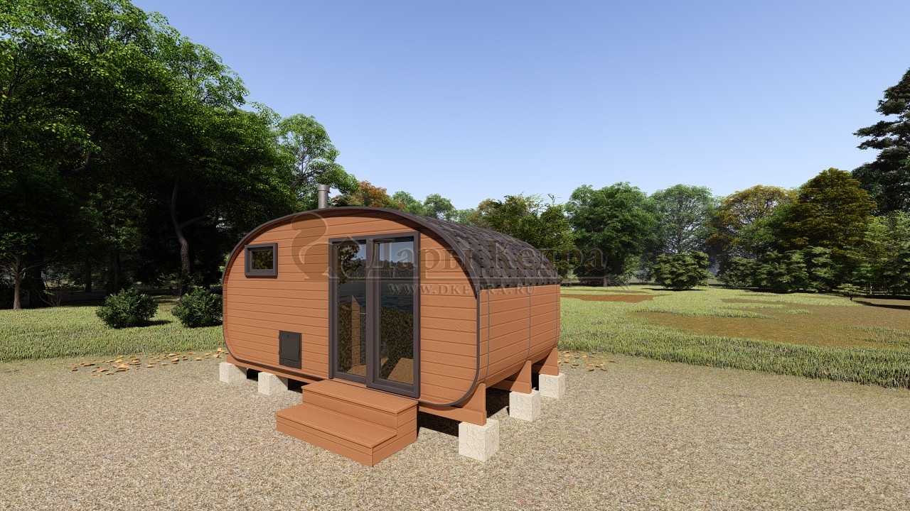 Баня-бочка представляет собой конструкцию в виде бочонка без углов. Такая форма считается оптимальной для равномерного распределения пара по всей внутренней поверхности парной. Таким образом, пар не скапливается в одном месте, а циркулирует по всему объему. Соответственно, круглая (квадратная, овальная) баня экономичная: топится быстро, требует дров мало.